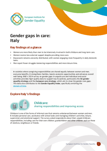- Women are more likely than men to be intensively involved in both childcare and long-term care.
